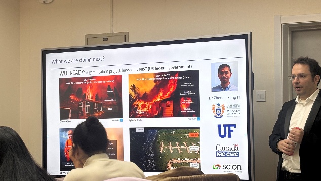 在交流环节,师生围绕技术优化、多学科应用及合作切入点等议题踊跃提问,Lovreglio教授均给予详细解答。需指出的是,邓青老师与Lovreglio教授均担任《Journal of Safety Science and Resilience》编委,双方长期保持密切学术合作,曾在国际交流中多次围绕疏散建模、风险模拟等议题展开研讨,为本次深入交流奠定了良好基础。会上,双方进一步探讨了北京科技大学与梅西大学在安全科学、行为建模及VR/AR应急培训等领域的合作前景。