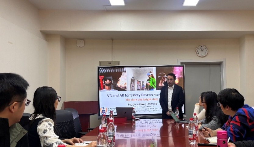 为精准对接师生在安全科学研究、灾害人类行为建模、虚拟现实技术应用等前沿领域的学术需求,助力教师开阔学术视野、筑牢学生专业根基,2025年12月11日,北京科技大学大安全科学研究院黄国忠教授与邓青副教授特邀国际安全科学与灾害行为建模领域知名专家、新西兰梅西大学建成环境学院Ruggiero Lovreglio教授,在土木楼214开展《VR and AR for Safety Research and Beyond: The dark and bright sides》的专题学术报告。本次学术活动由地下空间开发与运维安全学科创新引智基地支持开展,报告会由大安全科学研究院院长黄国忠教授主持,安全系及相关专业师生、领域内研究者共同参与。